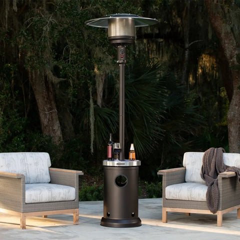 Mocha Finish Powder Coated Patio Heater with Permanent Table
